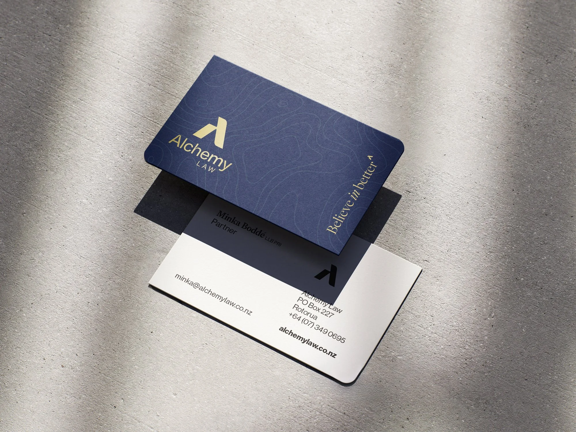 Working with a Bay of Plenty based law firm, the goal was to move Alchemy Law beyond the category norms, from a traditional legal service to a more considered, human centred brand.